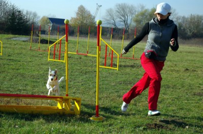 Na naše agilitné začiatky sa veru len tak nezabúda. Napáda mi len jedno, jediné: des a hrôza. Jediným pozitívom bol fakt, že Nelly bola konečne medzi psami, začali sme sa nimi viac stretávať a nemuseli sme počúvať stále ako sa spolu nemôžu hrať, lebo ich pes je taký a taký. Prvý rok nám, čo sa agility týka nepriniesol absolútne, ale že absolutne nič. Nelly nemala vôbec záujem so mnou pracovať, vždy ju viac bavilo, keď si pobehovala po cvičáku ako niečo so mnou robiť. Nejaké skákanie alebo tunelovanie veru nebolo nič pre ňu. Moje na prd vedenie tomu tiež nepridávalo moc na pohode a lepšom výkone, či už mojom alebo Nellčinom.